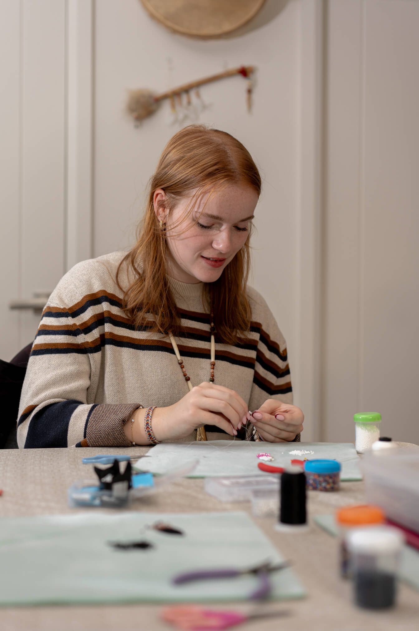 Cet atelier vous offre l’enseignement de base nécessaire pour la confection de vos propres boucles d’oreilles à franges. Tout le matériel nécessaire est fourni sur place. Vous avez la possibilité de réaliser votre confection en prenant rendez-vous à un moment qui nous convient, ou en vous joignant à un groupe déjà établi.